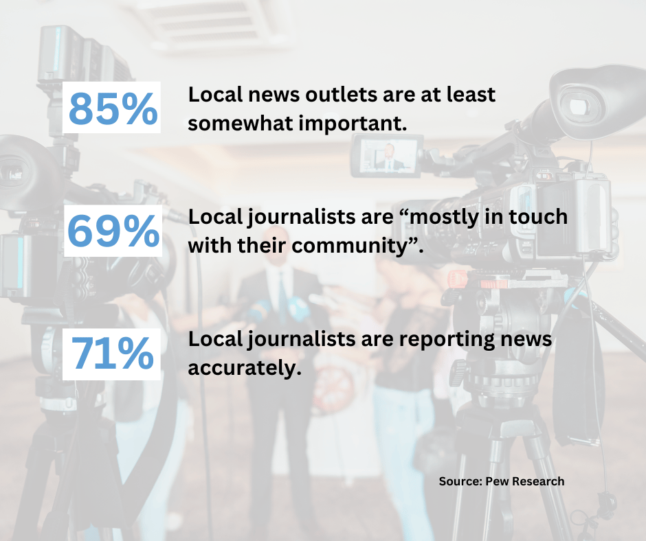 It bases its findings on research by Pew Research Centre that found 85% of Americans say, “local news outlets are at least somewhat important to the well-being of their local community” with 71% saying local journalists are reporting the news accurately. Further, most Republican and Democrat voters both believe that “local journalists are in touch with their community.”